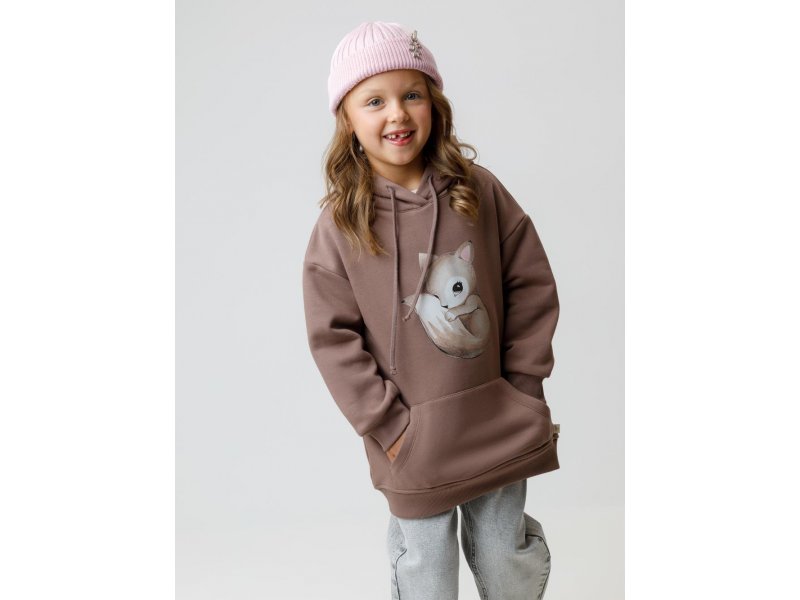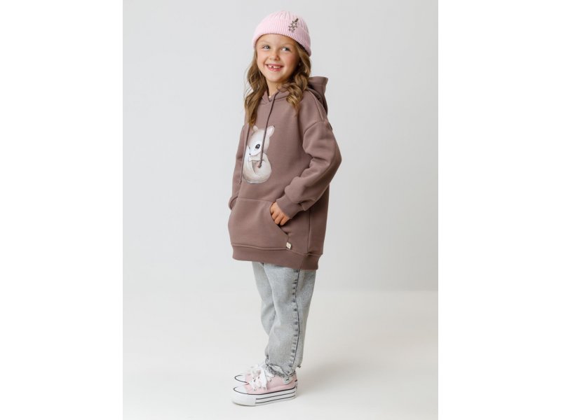 Худи с капюшоном для девочки из мягкого футера трёхнитки с начёсом. Пояс и манжеты выполнены из мягкого эластичного трикотажа. Худи сохраняет форму и стойкий цвет после многочисленных стирок и идеально подходит на каждый день. Оригинальный принт выполнен из стойких текстильных гипоаллергенных красителей. Все трикотажные полотна производятся в соответствии с нормами швейцарского сертификата ЭкоТекс.