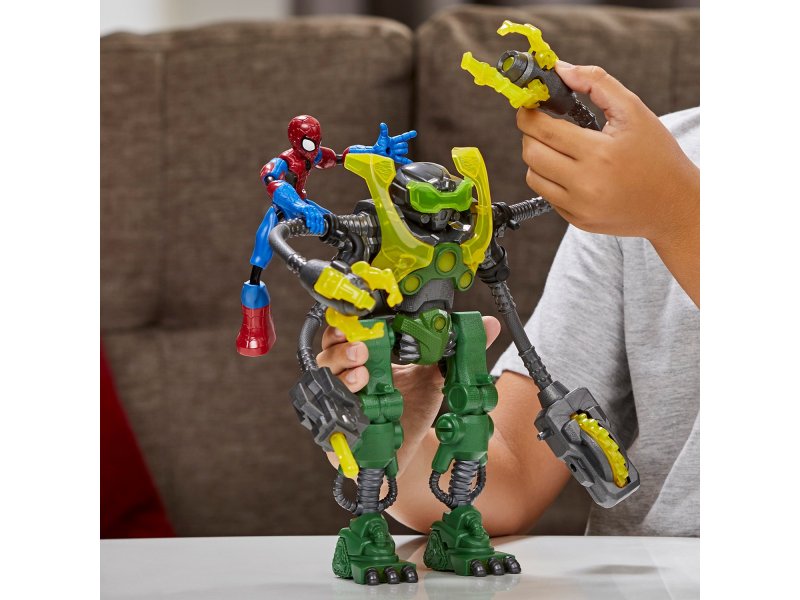 Большой и злой Ок-Бот высотой 25,4 см возвышается над фигуркой Человека-паука высотой 15,2 см