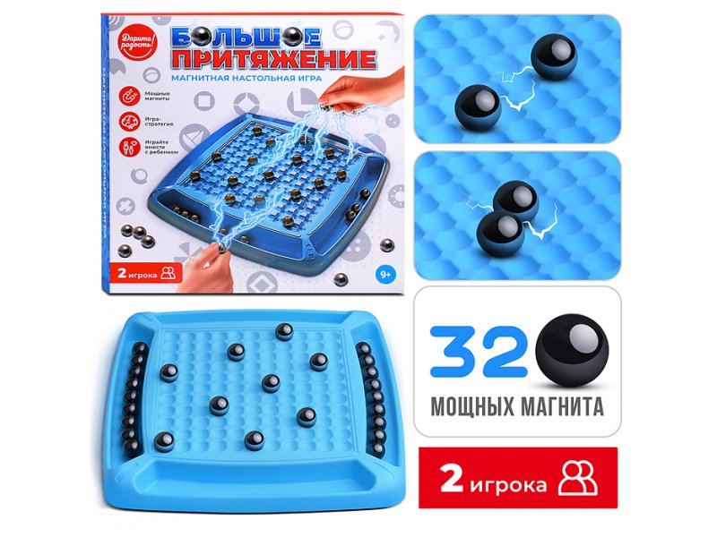 • В игре нужно поочерёдно выкладывать магниты на поле так, чтобы они не сцепились.