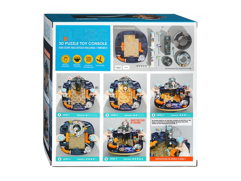• Наклоняя лабиринт, нужно провести пластиковые шарики от старта к финишу