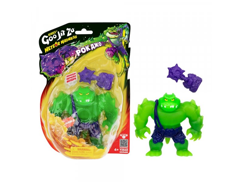 Встречай Рок Джо из новой коллекции Гуджитсу Метеор Мэднесс! После падения загадочного метеорита на вселенную Гу обрушилась новая угроза, и злодеи намерены воспользоваться этим шансом, чтобы наконец одолеть героев Гуджитсу. Рок Джо, вооружённый метеоритным молотом-крушителем и силой уникального Гу-наполнителя, готов вступить в бой! Оттяни его руку с оружием назад и выполни мощный МЕТЕОР-УДАР, чтобы нанести сокрушительный урон. Смогут ли герои противостоять злодеям? Всё зависит от тебя! Рок Джо способен растягиваться в три раза, а затем легко возвращаться к своей первоначальной форме. Собери всех героев из коллекции Метеор Мэднесс и устрой эпичную битву за судьбу Гу-вселенной. Сила метеорита — в твоих руках! Высота фигурки - 12 см. Рок Джо наполнен жидкостью и твердыми частицами в форме клыков. У фигурки есть съемные шорты и оружие. Состав: полимерные материалы, красители, вода. Товар сертифицирован и безопасен для детского использования. Упаковка: блистер (16,5 х 7 х 24,5 см).