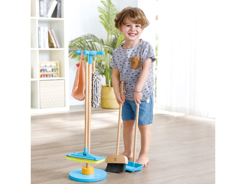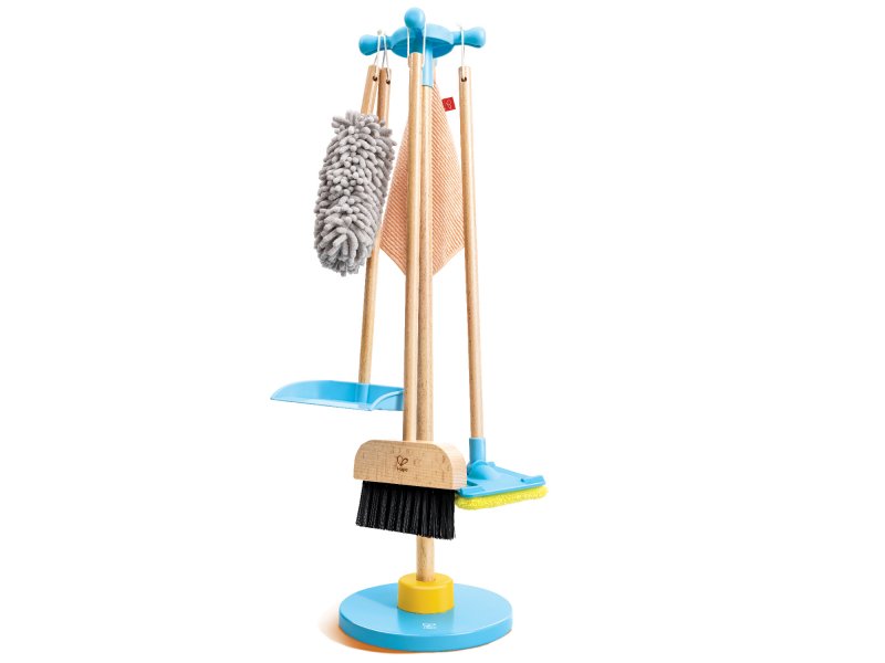 Дополняя свои сюжетные игры аксессуарами из набора, дети в полной мере проявляют фантазию, учатся поддерживать чистоту и тренируют мелкую моторику. Кроха уберет мелкий мусор с помощью совка, избавится от пыли на полках и даже изобразит мытье полов шваброй с текстильной насадкой на корпусе. В наборе представлены реалистичные аксессуары для уборки, которые помогут детям в форме игры научиться поддерживать в квартире порядок и чистоту. В игровой набор входит: щетка для полов, швабра, совок, ерших для пыли, тряпочка и стойка-держатель. Щетки из набора выполнены из прочной древесины с тщательно отшлифованной поверхностью, текстиля и пластика, окрашенного безопасными красителями.