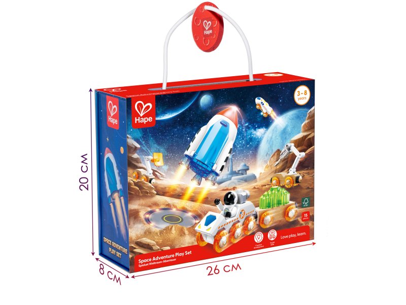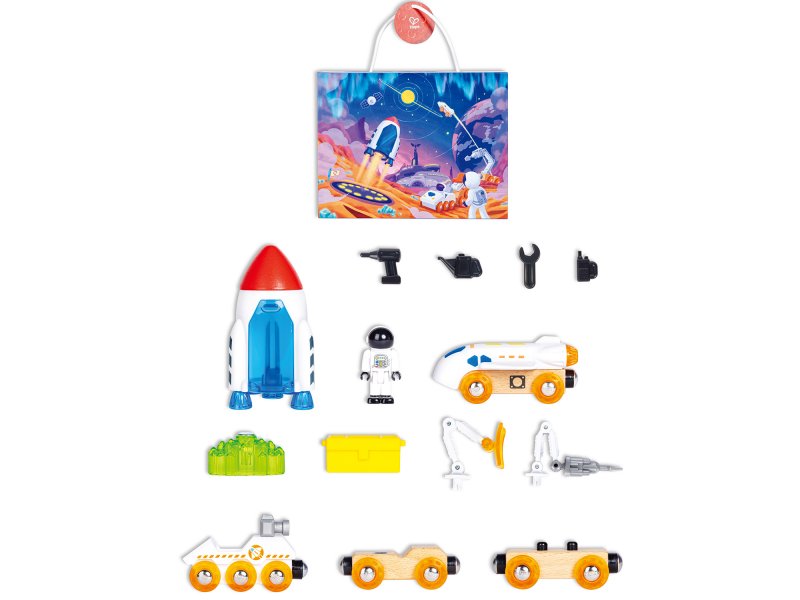 • Комплектация: самолет, ракета, исследовательская машина, 2 прицепа, радар, дрель, груз, фигурка космонавта, 4 инструмента, ящик для инструментов