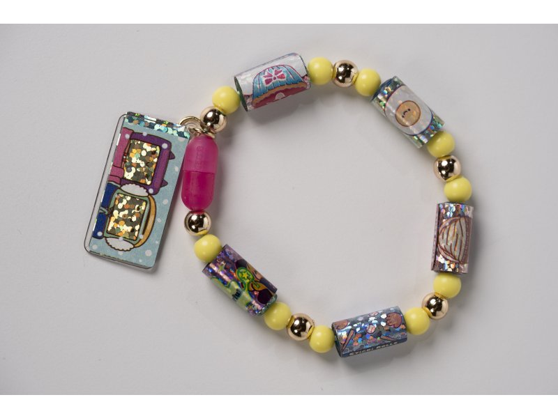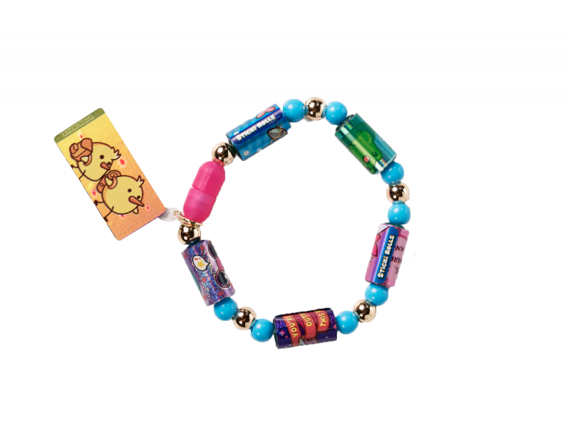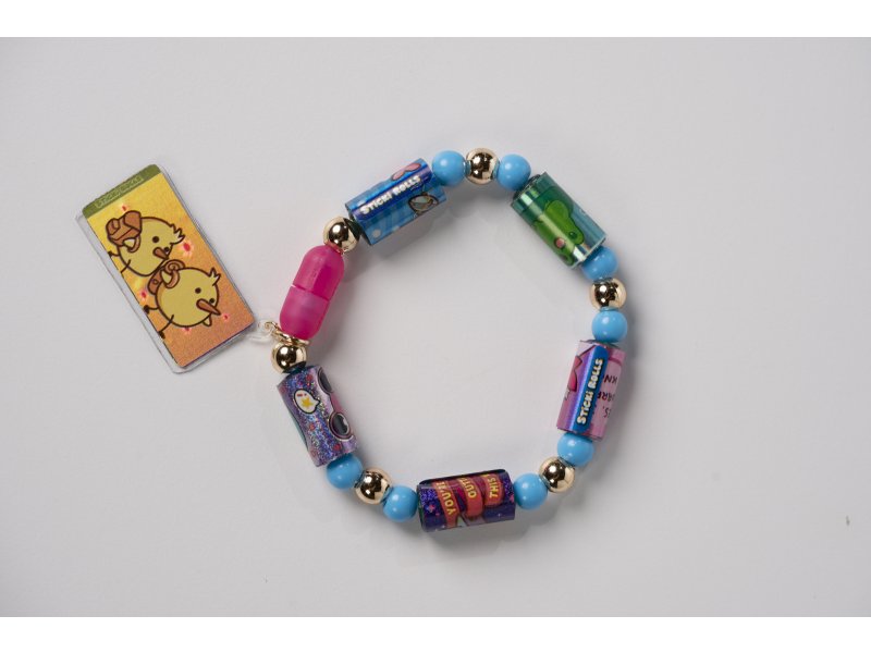 Игровой набор состоит из эластичного браслета со съёмными аксессуарами: пятью шармами, восемнадцатью бусинами и одной подвеской. Шарм представляет собой ролик, на котором наклеено рулоном 10 стикеров. Стикеры - это мини-наклейки, разделенные на разные коллекции. Браслет имеет удобную пластиковую застёжку, благодаря которой аксессуары легко снимаются и меняются местами. В наборе также есть инструкция и одна страница из стикер-альбома, куда можно вклеивать стикеры и создавать свою коллекцию. Эти страницы можно обменивать или добавлять в альбом, расширяя коллекцию. Сам альбом в состав данного набора НЕ входит. Упаковка-сюрприз закрытого типа в форме капсулы.