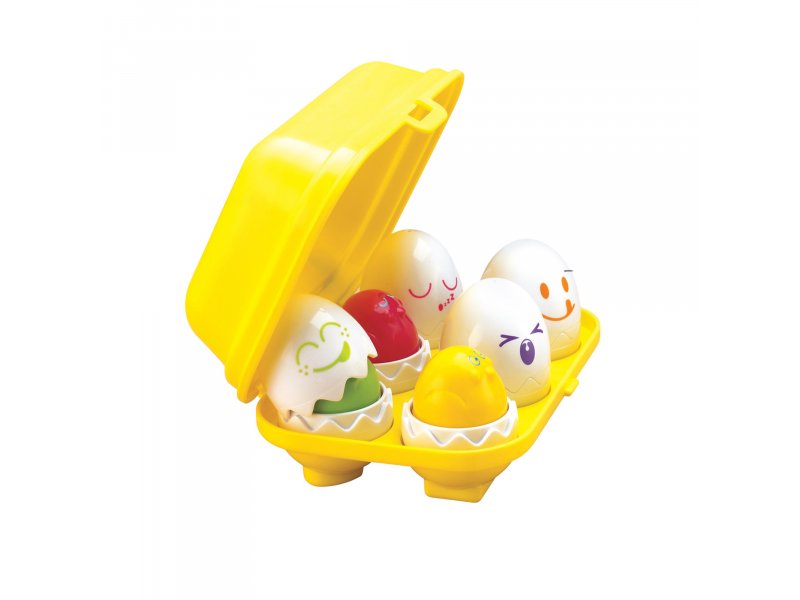 В развивающий игровой набор Тумис Сортер Найди яйцо входят лоток и 6 яиц со съемными скорлупками. На каждом яйце изображены разноцветные лица с разными эмоциями. Внутри яиц находятся цыплята разных цветов с различными выражениями лица. Снизу у яиц есть основание разных форм (сердечко, треугольник и др.), которое сопоставляется с выемкой в лотке. Высота яиц - 7 см. Игровой набор изготовлен из высококачественных полимерных материалов. Без острых углов и мелких деталей. Товар сертифицирован и безопасен для детского использования. Упаковка: закрытая коробка (21 х 8х 14 см).