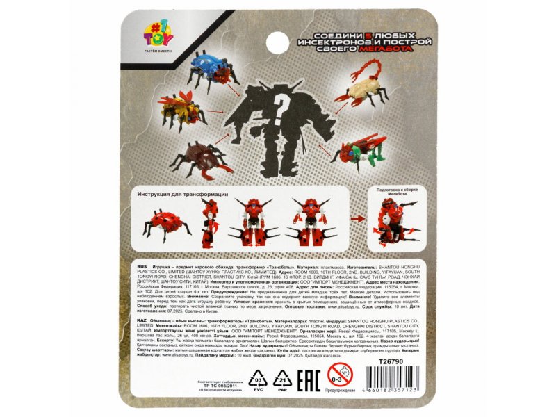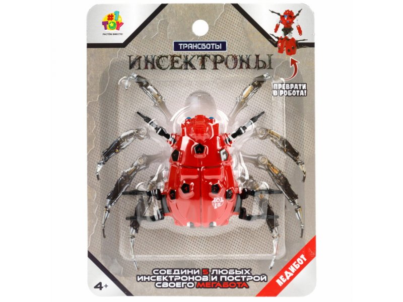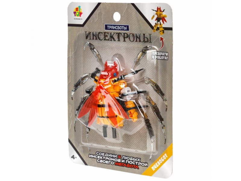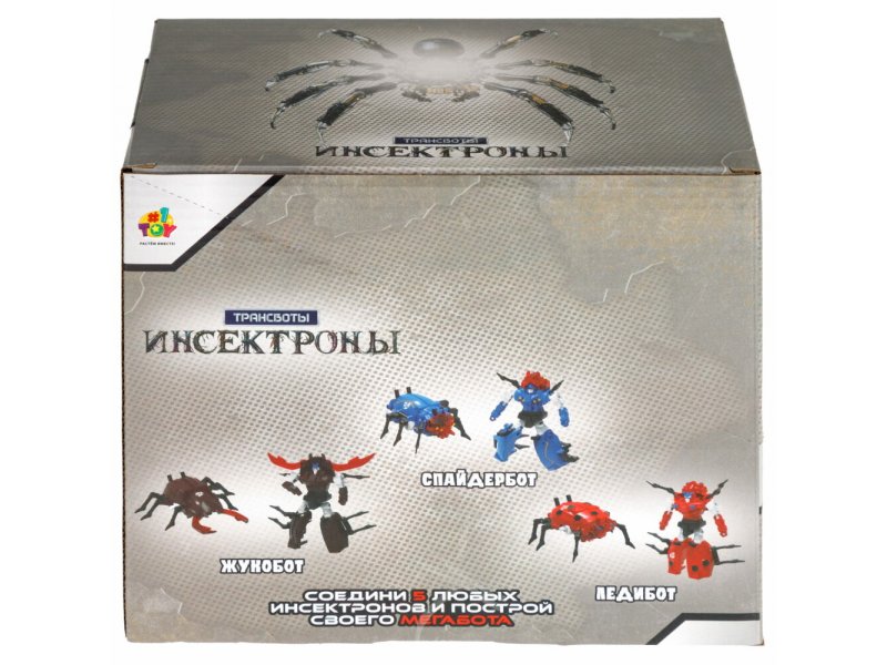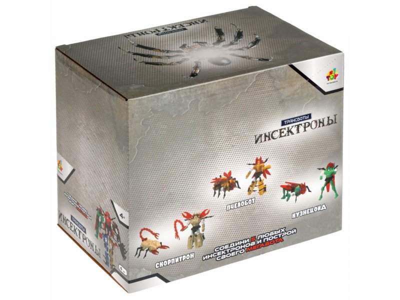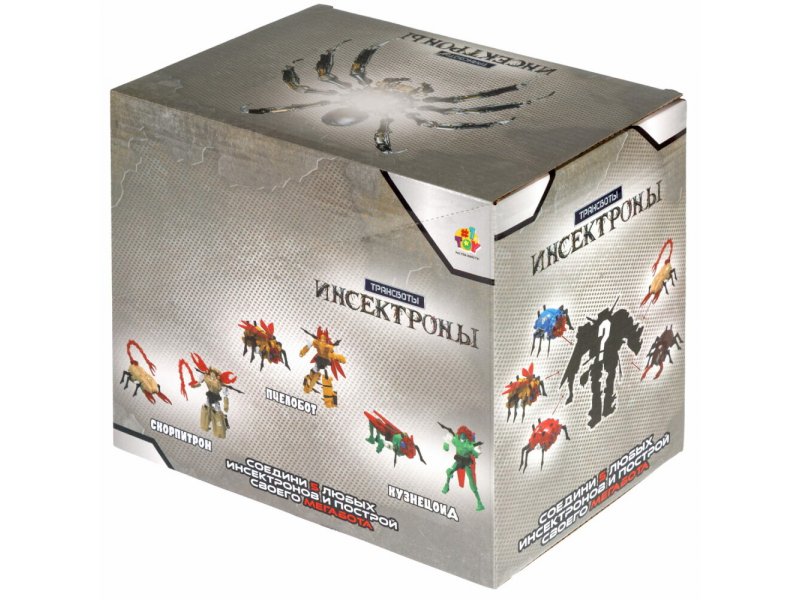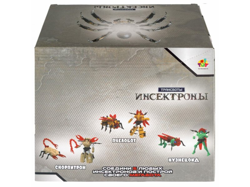"«Инсектроны» – это уникальная линейка игрушек-трансформеров, в которой встречаются загадочный мир насекомых и высокие технологии. Каждый трансформер изначально представляет реалистичное насекомое: божью коровку, паука, жука, скорпиона, кузнечика или пчелу, и с лёгкостью трансформируется в оригинального боевого робота с индивидуальным стилем и характером. Эта серия легендарных Трансботовбыла создана с особым вниманием к деталям: от натуральной текстуры насекомых до чётких, продуманных механических форм. Главная особенность серии – система комбинации. Из любых пяти игрушек ребёнок может собрать большого мощного робота – Мегабота! Каждый из трансформеров может стать любой частью большого робота: руками, ногами, или телом с броней. Стоит лишь поменять части местами, и уже получится новый мегабот. Это открывает безграничные возможности для игры и творчества."