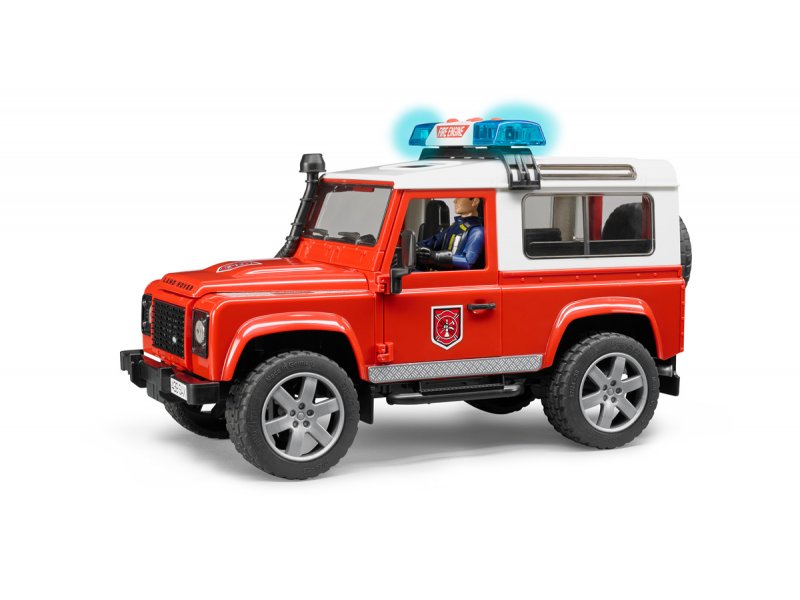 Игрушка Bruder, Внедорожник Land Rover Defender Station Wagon Пожарный с фигуркой выполнена с высокой детализацией. BRUDER – отличный подарок для мальчика любого возраста. Автомобили и специальная техника немецкого производителя вызывают восхищение детей, игрушки долговечные и надежные.