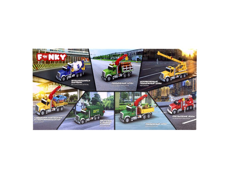 Новая коллекция интерактивных машинок от Funky Toys! Большой ассортимент: в коллекции 28 видов машинок и наборов. Машинки из коллекции Funky City - это игрушки с механизмом, светом и звуком. Выберите игрушку для своего ребенка: - Cпецтехника: большие наборы с аксессуарами и дополнительными функциями - Школьный автобус или фургон Скорой помощи с подвижными элементами - Гоночные машинки и машинки спецслужб! - Яркие внедорожники и джипы с аксессуарами для путешествий по горам - Игровые наборы с вертолетом и машинкой - Машинки-кейс: портативные наборы из мини машинок и аксессуаров Игрушки Funky City отличаются высокой детализацией, разнообразием элементов и ярким дизайном. Игрушки изготовлены из прочного пластика. Функциональные машинки упакованы в открытую, стилизованную коробку, которую можно сохранить и использовать как подставку. Машинки работают от батареек, они включены в набор. Игрушки подходят для детей 3+.