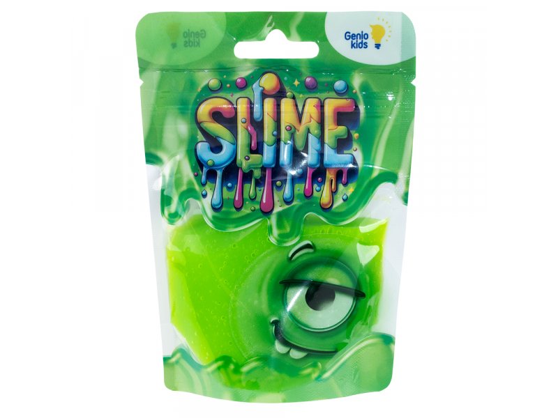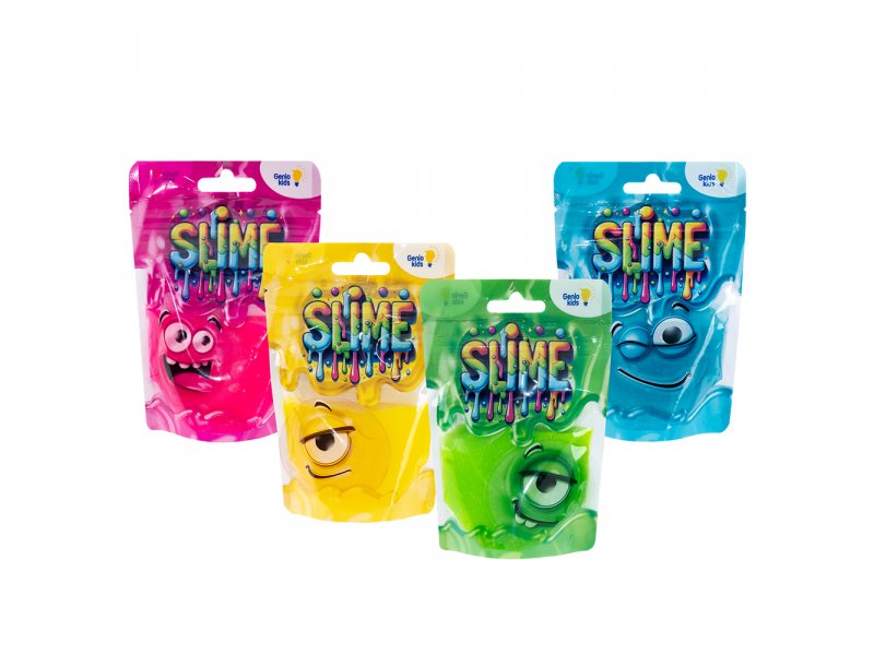 Слайм в устойчивом зип-пакете. Четыре цвета в аасортменте: розовый, зеленый, голубой, желтый. Цвет пакета соответсвует цвету слайма внутри. Объем 100 грамм.