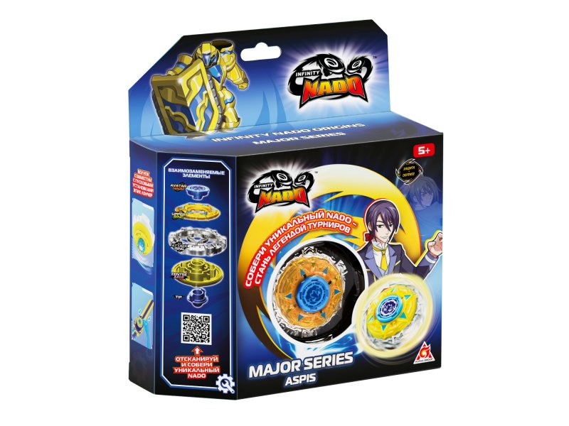 Каждая вселенная начинается с легенд. В мире Инфинити Надо всё начинается с Ориджинс — коллекции легендарных волчков главных героев и великих Аресов! Металлический волчок Infinity Nado Мэйджор Aspis Ослепительный щит состоит из пяти частей: аватара Nado, верхнего и атакующего колец, центральной оси и наконечника. Он принадлежит Дэвису и отличается повышенной защитой, что позволяет отражать мощные атаки соперников. Каждый элемент можно заменить на другой из коллекции Ориджинс и повлиять на исход турнира. Сменный наконечник открывает возможность совмещать волчки Ориджинс с пусковыми установками Эпик Лончер. Меняй кольца, оси, наконечники и способы запуска. Собери уникальный Nado — стань легендой турниров! В комплект входят: волчок, пусковая установка, лента для запуска, сменный наконечник, монтажный инструмент, инструкция. Упаковка — коробка с окном 17×6×19,5 см. Производитель бренда "Infinity Nado" — международная компания Alpha Group. Эксклюзивный дистрибьютор бренда "Infinity Nado" — компания "РОСМЭН".