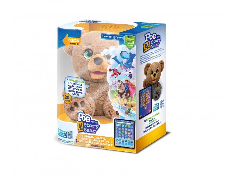 Интерактивный сказочный медведь Мишка По из серии Poe the AI Story Bear от бренда 1TOY – это инновационный интерактивный медвежонок, созданный на базе OpenAI, использующий возможности искусственного интеллекта для сочинения уникальных детских историй. Он объединяет мир современных технологий и классических сказок, превращая каждый сюжет в живое, увлекательное приключение. Мишка По работает вместе с приложением Poe AI Story Creator, подключается через Bluetooth и использует интеллектуальные алгоритмы, чтобы создавать истории на основе выбранных ребёнком идей. В приложении ребёнок может выбрать героев, места и темы, а умная игрушка превращает этот набор в оригинальную сказку. Главное преимущество Мишки По – это живое взаимодействие с искусственным интеллектом в безопасной, детской среде. Игрушка не требует постоянного подключения к интернету и сохраняет до 60 минут любимых историй даже без доступа к гаджету. Поддерживает более 30 языков. Размер игрушки – 30 см.