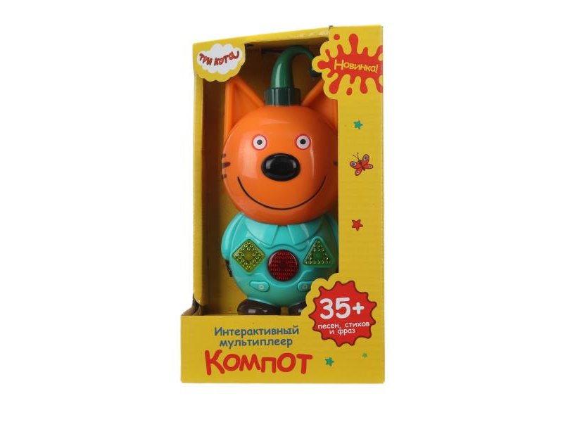Вашего малыша приведёт в восторг эта игрушка в виде Компота – персонажа популярного детского мультфильма. Ребёнок с удовольствием будет нажимать на яркие кнопки и слушать любимые песни, фразы героя, интересную сказку и познавательные стихотворения. В увлекательной форме малыш познакомится с цифрами и фигурами. Благодаря компактным размерам игрушку удобно брать с собой на прогулку или в поездку.