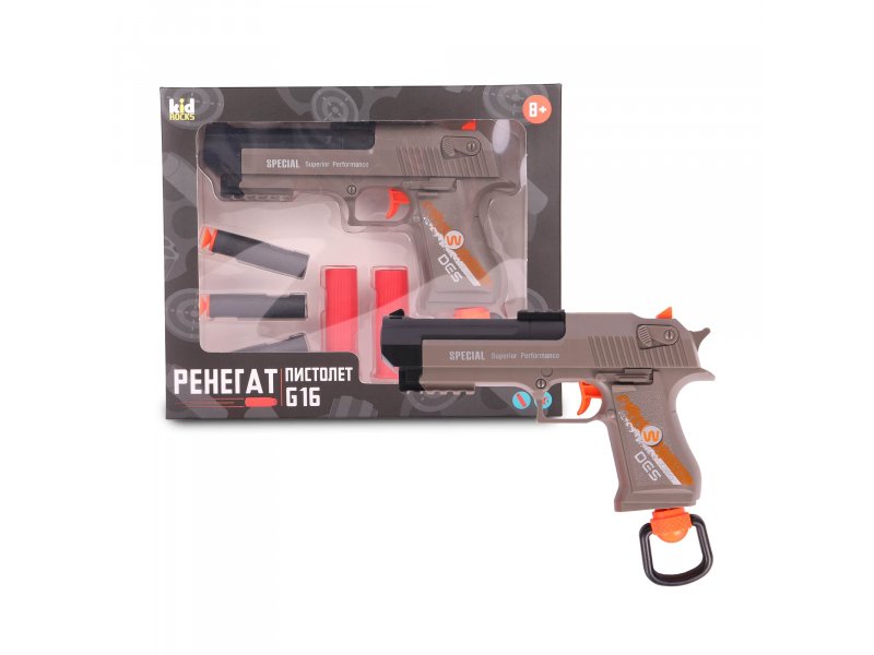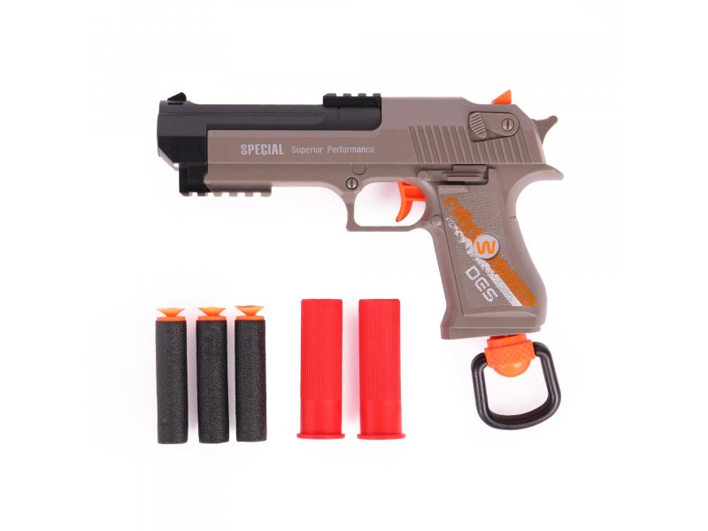 Комплектация: игрушечное оружие, гильзы. Мягкие пули 3 шт.