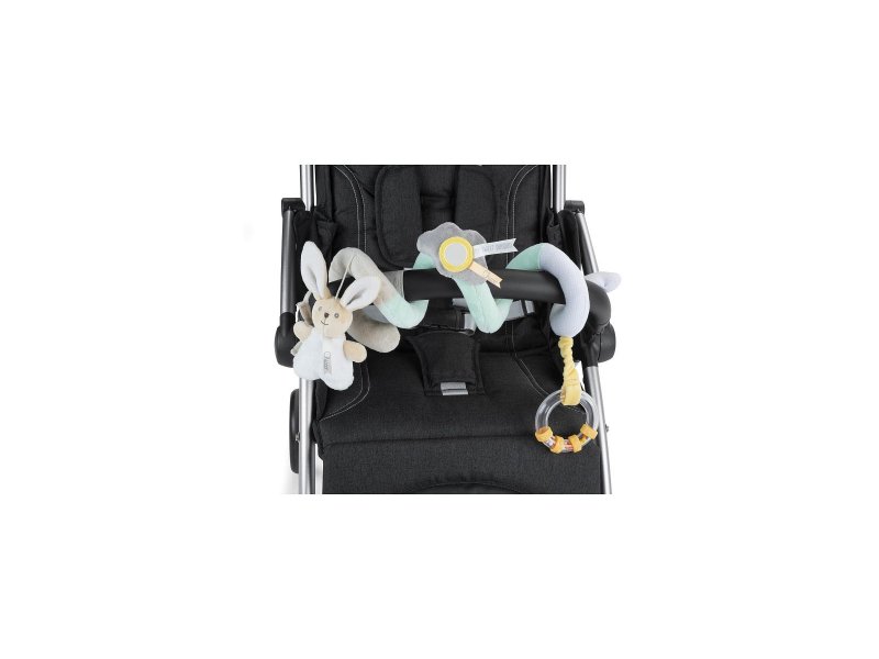 Плетёная спираль с 3-мя разными подвесками идеально подходит для крепления к коляске и развлечения во время ежедневных прогулок. Спиралевидная форма позволяет легко разместить игрушку и покрыть всю поверхность дуги безопасности коляски.