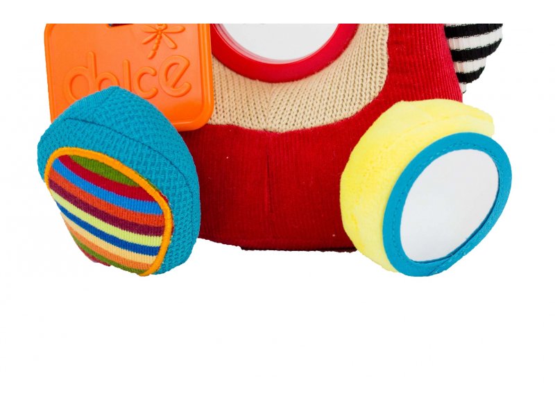 Красивый и забавный Котик с шуршащими элементами, с безопасным зеркальцем на лапке, ленточками и прорезывателем. На животе есть колечки на изучения счета.