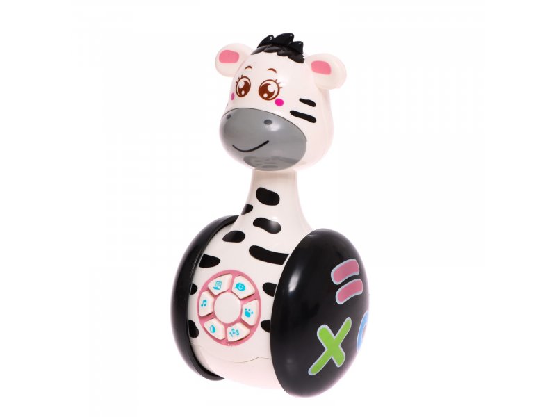 Игрушка-неваляшка Зебра Гого развивает музыкальный слух, мелкую моторику рук и память. Занимаясь с ней, малыш научится различать цвета, формы, животных и звуки, которые они издают.