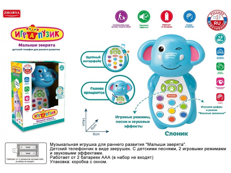 Игрушка развивающая Zhorya Телефончик Слонёнок