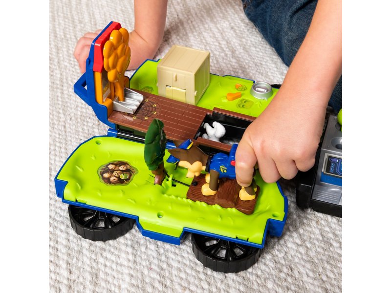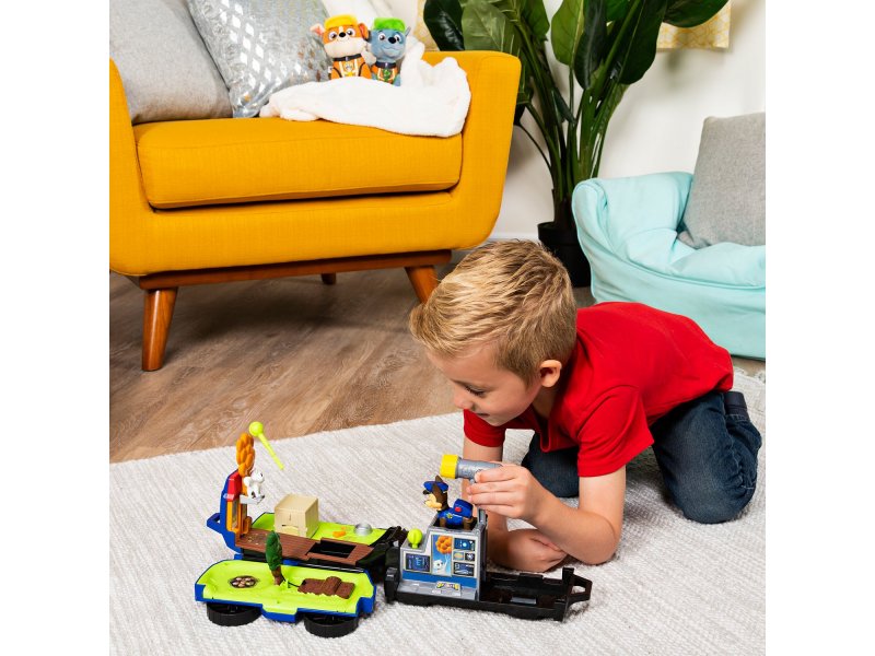 Игрушка Spin Master Щенячий патруль машинка Спасательная станция - трансформер Гонщика - это отличный выбор для ребенка! Эта полицейская патрульная машина Щенячьего Патруля открывается, превращаясь в захватывающий игровой комплекс с тремя зонами спасения! Ваш ребенок может распаковать свой набор Спасательная станция-трансформер и обнаружить сценку прямо из мультфильма Щенячьего Патруля. Кошка по имени Кали застряла на крыше, семья сусликов заперта в ловушке под деревом и кролик попал под контейнер! Гончик уже в деле, так как нужно выполнить три спасательных операции! Помести фигурку Чейза (в комплекте) в центр управления операциями и заряжай пушку снарядами-мячиками (в комплекте). Целься и стреляй теннисными мячиками прямо в воздушные шары, чтобы Кали благополучно спустилась на землю! Затем поставь Гончика перед деревом и сдвинь назад, чтобы поднять упавшее дерево и спасти семью сусликов! И последнее – помогите Гончику поднять контейнер и спасти кролика! Гончик спас положение! Закрой игровой набор, посади Гончика на место водителя и мчись на следующее приключение на настоящих колесах! Открой для себя насыщенный приключениями мир игр с набором Гончика Спасательная станция-трансформер - два в одном!