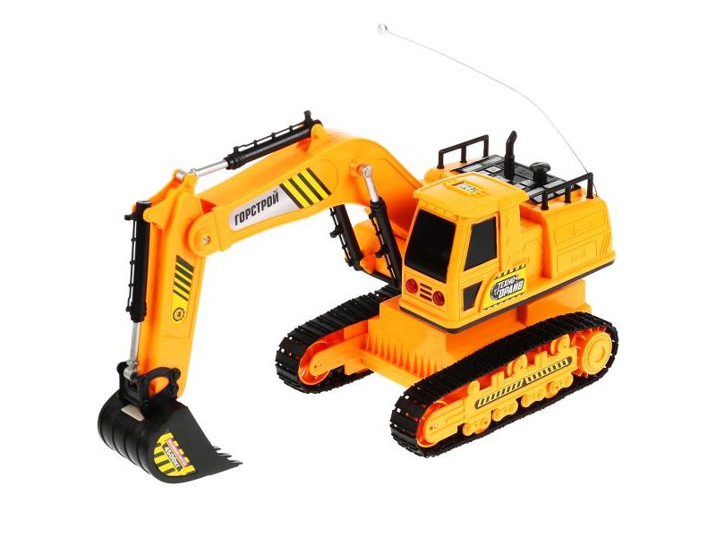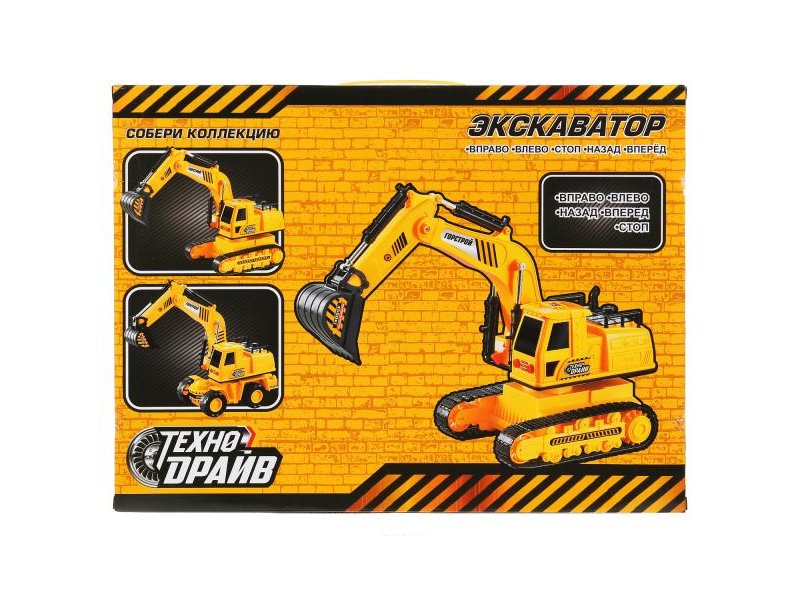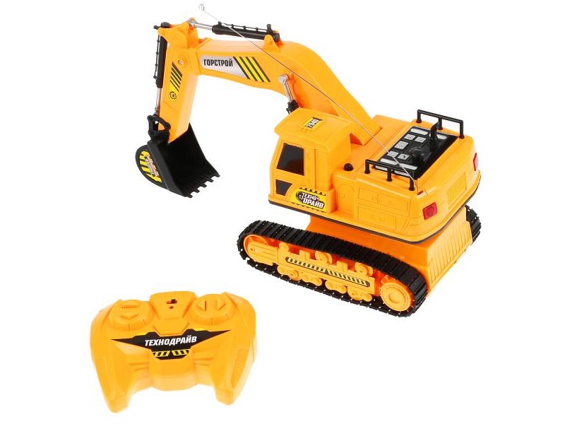 Игрушка ТехноДрайв Экскаватор на радиоуправлении порадует и ребёнка, и коллекционера особенностями: яркий дизайн, подвижные детали (ковш), в комплекте пульт ручного управления (команды: вправо, влево, стоп, назад, вперёд).