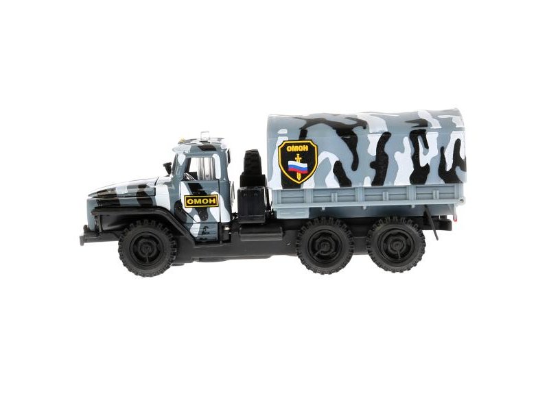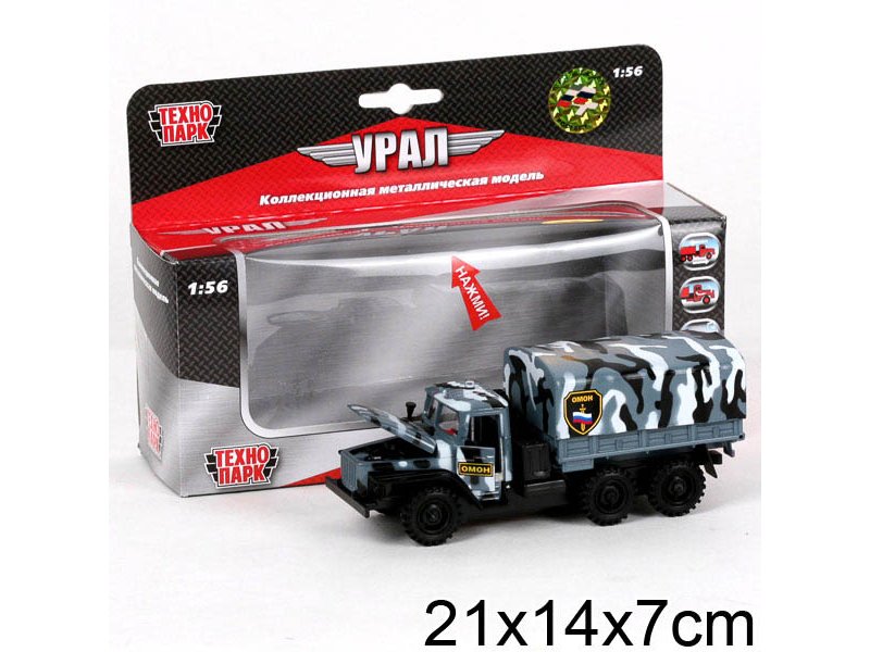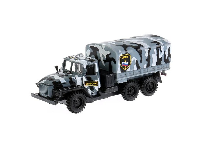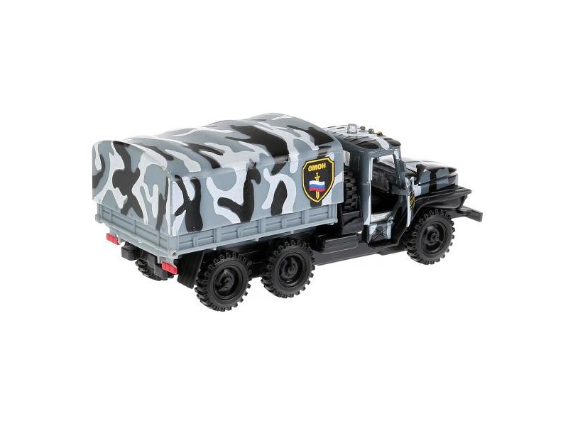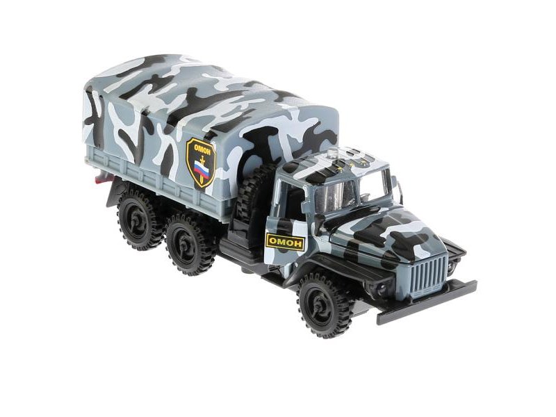 Игрушка Технопарк машина Урал Омон 1:43, свет, звук, инерционная выполнена из металла Урал Омон. Двери кабины и капот открываются, кузов можно поднять и опустить. «Урал» выполнен с высоким уровнем детализации в реалистичной манере в масштабе 1/43. Автомобиль легко передвигается по любой поверхности благодаря устойчивым функциональным колесам на резиновых шинах с протектором.