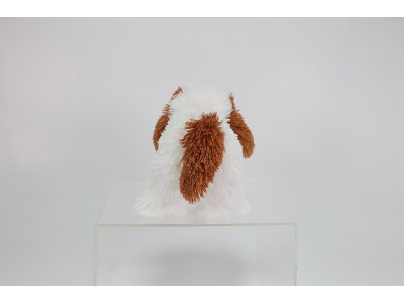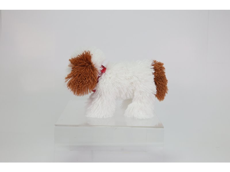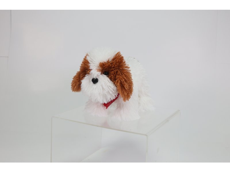 Игрушка собака белого цвета из плюша со съемным поводком (разбирается на два равных отрезка длиной 30 см) и тканевой банданой в комплекте. Имеет запатентованный пластиковый механизм, позволяющий ей ходить по любой твёрдой поверхности без батареек, если потянуть ее за поводок. Механизм состоит из двух колес, соединенных с передним лапами. При движении колеса крутятся, приводя в движение передние лапы; таким образом, создается ощущение, что собака ходит. Данный механизм съемный, что позволяет ребенку после прогулки его достать и использовать как классическую мягкую игрушку