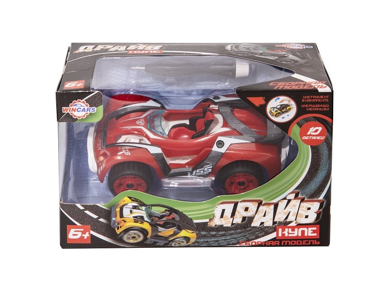 Сборная модель внедорожника с подвижными колесами и инерционным двигателем. Для сборки используются специальные инструменты.