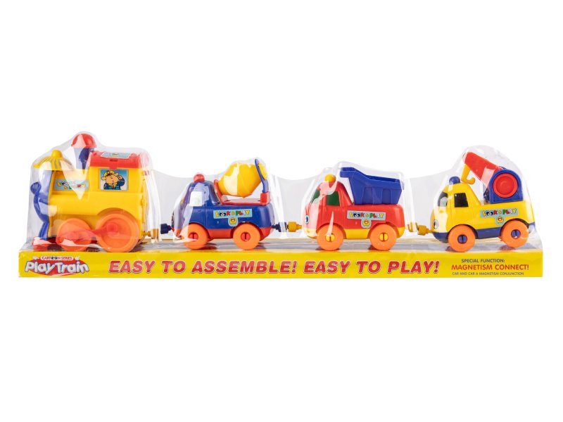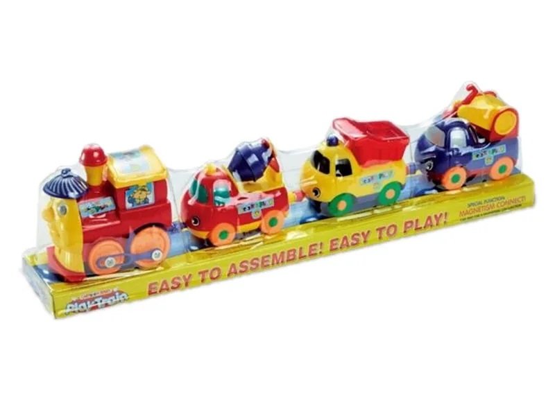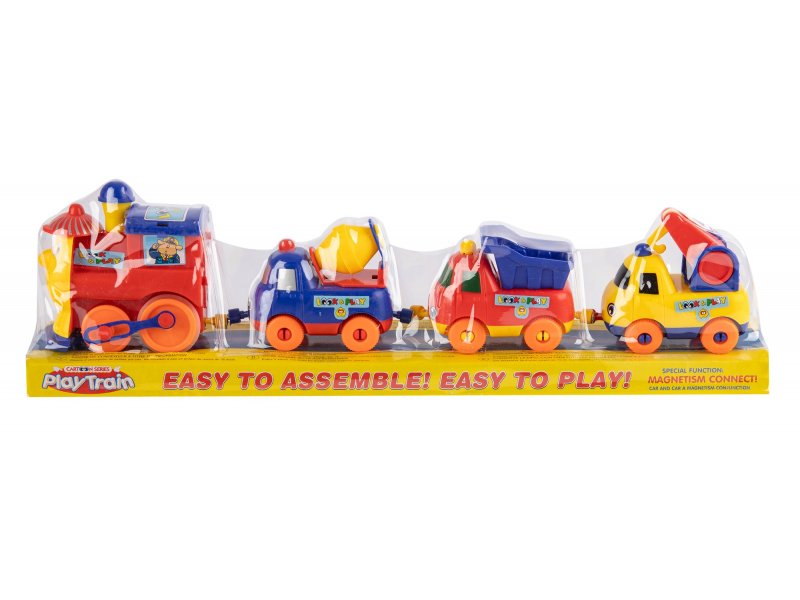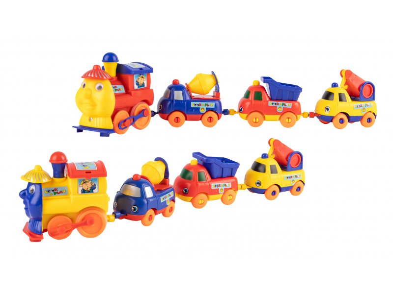 Яркий игрушечный паровозик приглашает малыша в веселое игровое путешествие. Паровоз подарит много приятных минут игры.