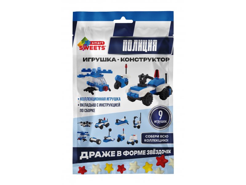 Карамель Smart Sweets Полиция игрушка и драже: клубника, апельсин,ананас в пакете 5 г