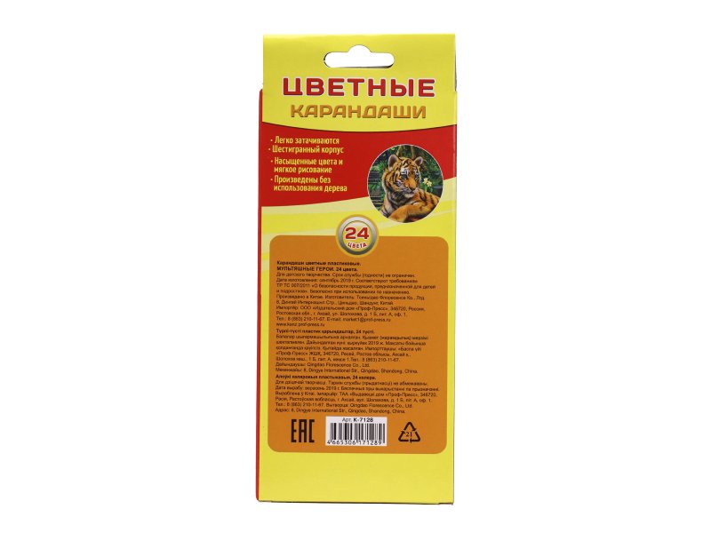 Карандаши цветные пластиковые Мультяшные герои, 24 цвета. Грифель d=2,65 мм. Легко затачиваются, шестигранный корпус, насыщенные цвета и мягкое рисование. Произведены без использования дерева.