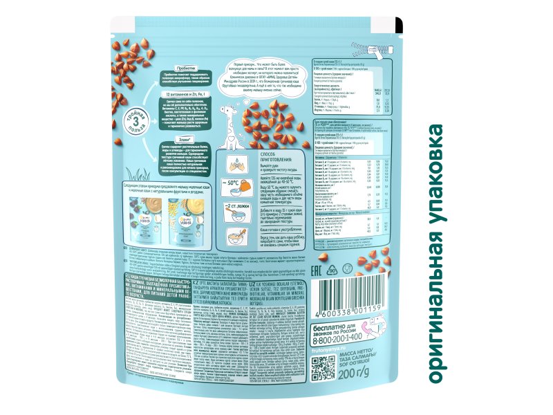 Каша ФрутоНяня безмолочная гречневая быстрорастворимая, 200 г