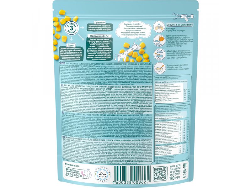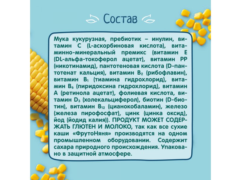 Каша ФрутоНяня безмолочная кукурузная, обогащенная пребиотиком, витаминами и минералами 180 г*6 шт.