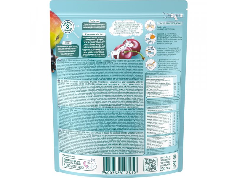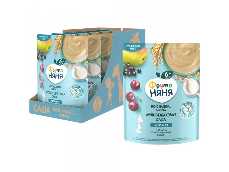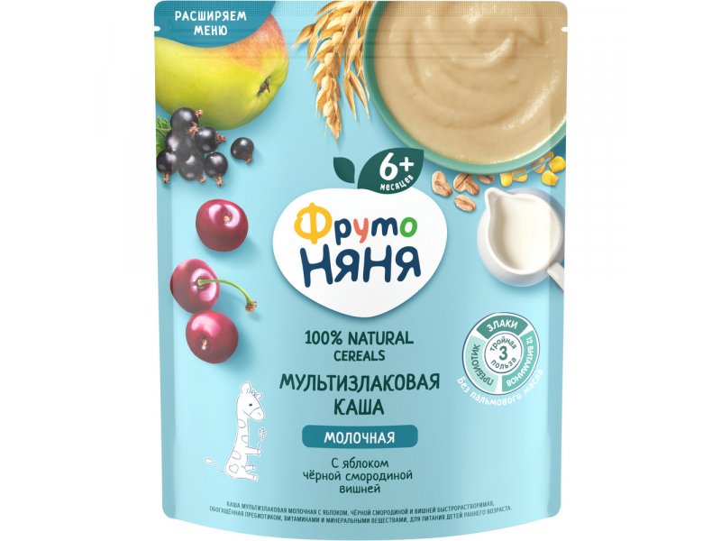 Каша Фрутоняня молочная мультизлаковая с яблоком, черн.смородиной, вишней 200 г
