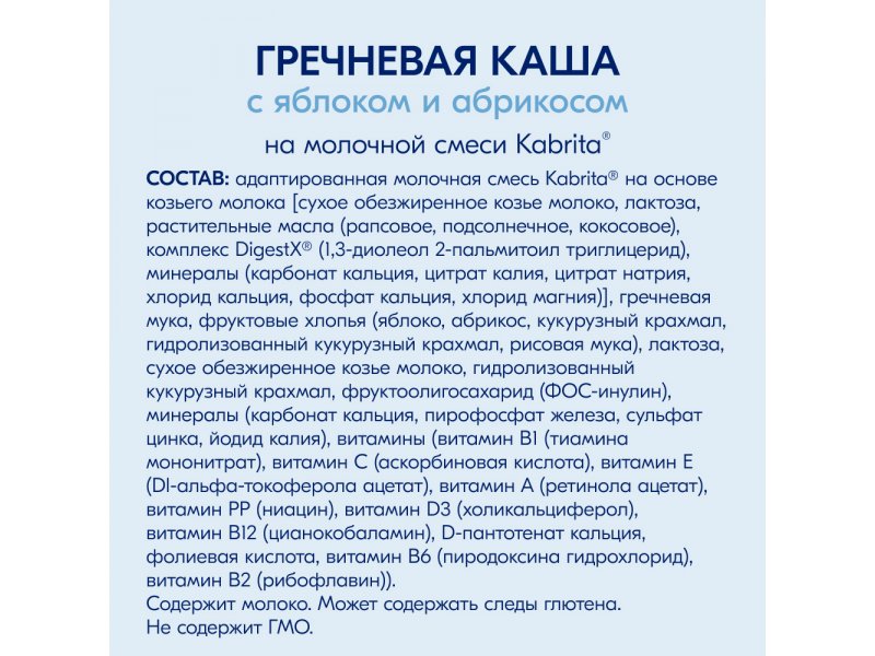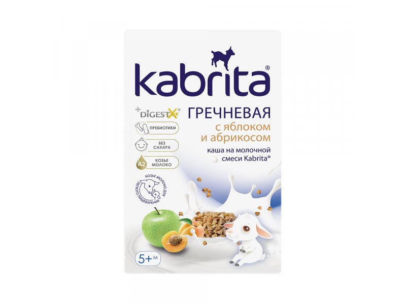Каша Kabrita, гречневая на козьем молоке с яблоком и абрикосом, 180 г