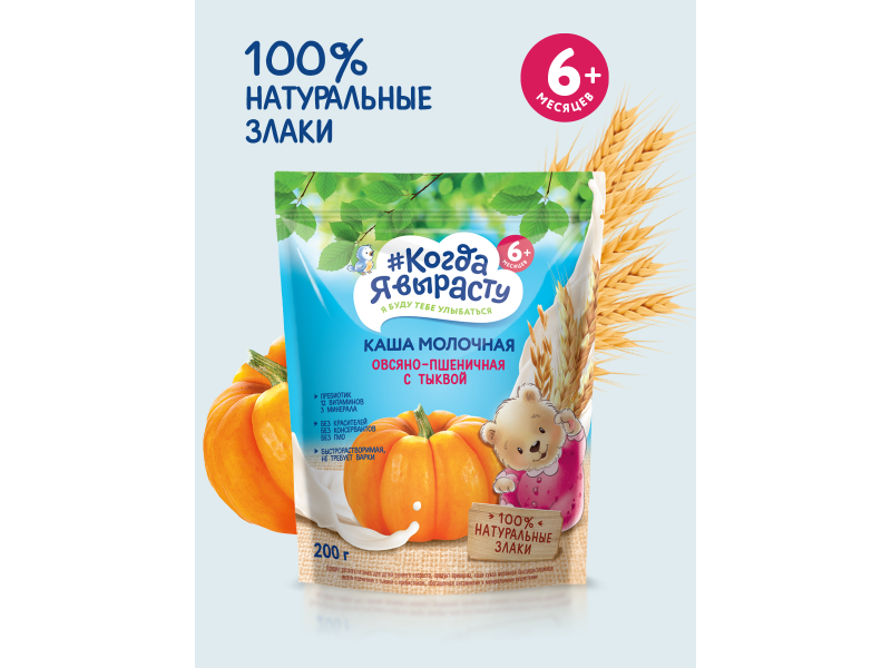 Каша Когда я вырасту молочная овсяно-пшеничная с тыквой 200 г
