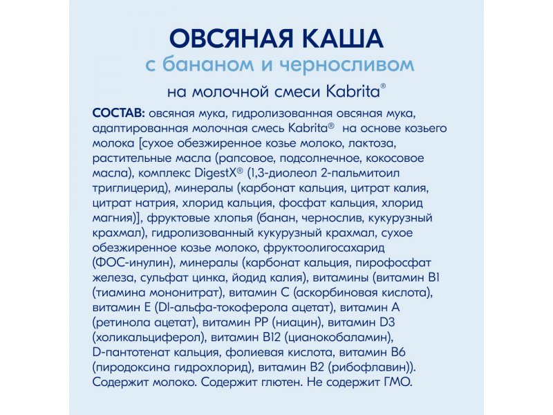 Каша на козьем молоке Kabrita овсяная с бананом и черносливом 180 г