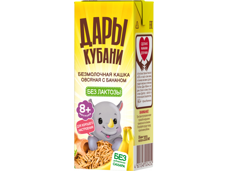 Кашка Дары Кубани безмолочная овсяная с бананом, обогащён. витаминами и минер. веществами 200 мл