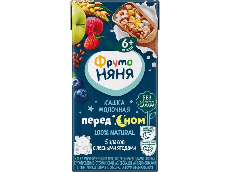 Кашка ФрутоНяня Перед Сном молочная пять злаков, лесные ягоды 200 мл