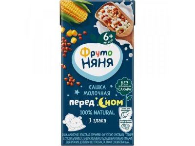Состав: молоко сухое обезжиренное (47,3 %); вода; крупа рисовая (6,6 %); мальтодекстрин; крахмал кукурузный; смесь растительных масел; сливки; ванилин; витаминно-минеральный комплекс