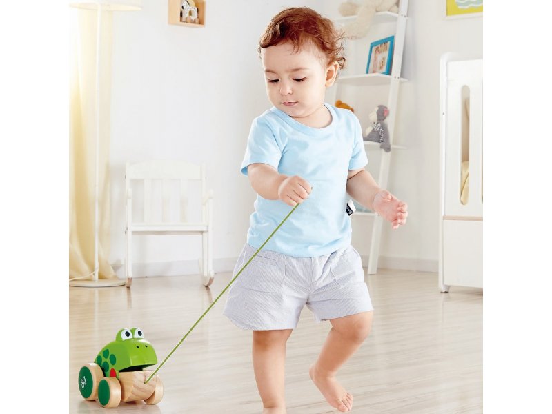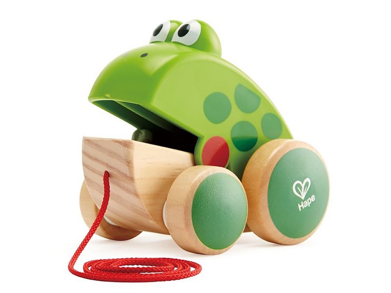 • Рот лягушки открывается и закрывается, когда ее тянут за шнур,