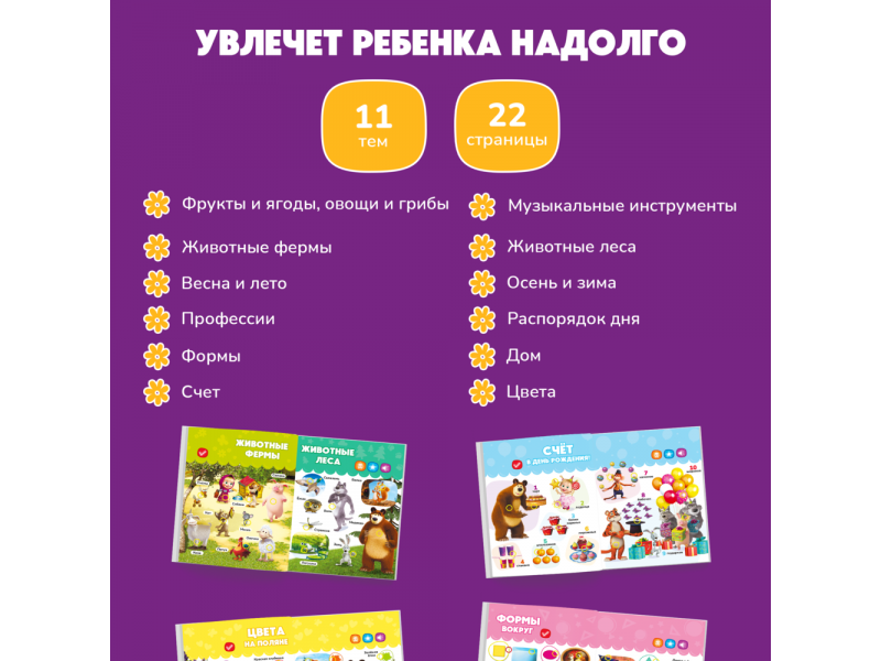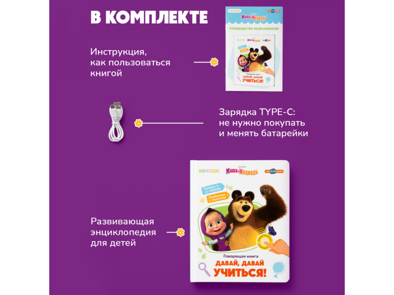 Книга BertToys Нажималка, Маша и медведь: Давай, давай учиться