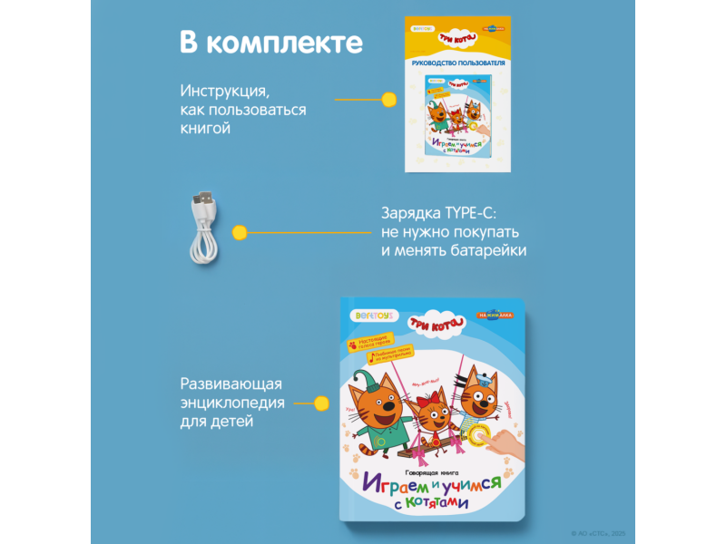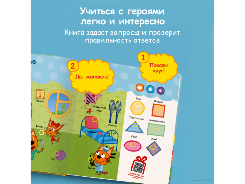 Книга BertToys Нажималка, Три кота: Играем и учимся с котятами
