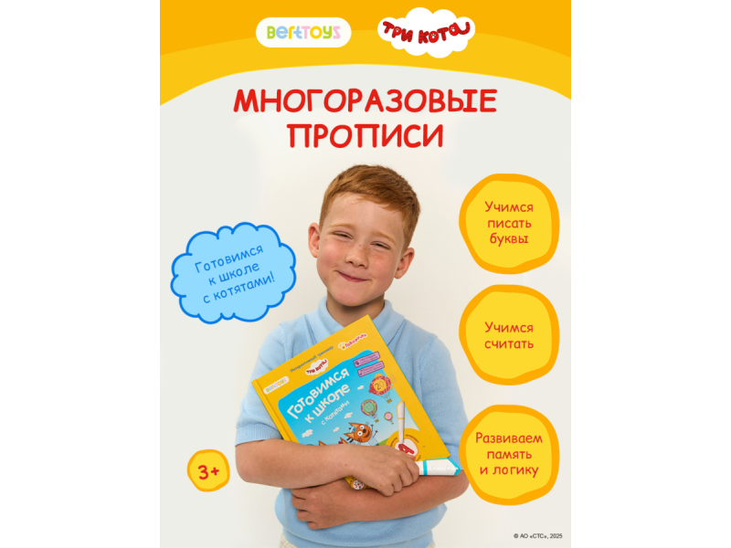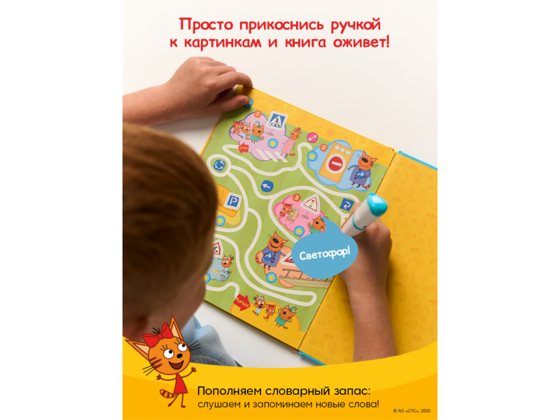 Книга BertToys Три кота, Готовимся к школе с котятами, интерактивная