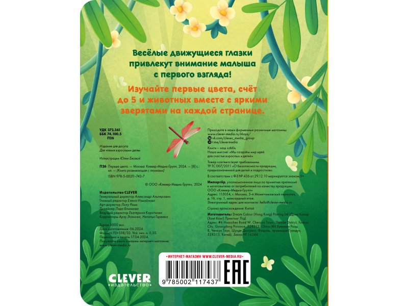 Книга Clever Книга развивающая с глазками. Первые цвета
