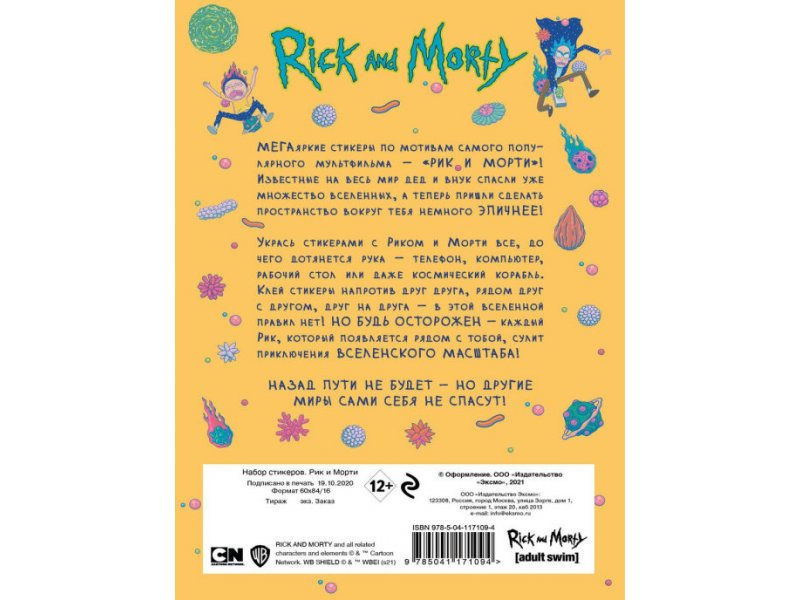 МЕГАЛИЦЕНЗИЯ! Официальная продукция для многочисленных поклонников самого популярного мультфильма для взрослых— "РИК ИМОРТИ" в книге от издательства Эксмо! Набор стикеров с самыми эпичными приключениями сумасшедшего ученого иего внука. Можно использовать как угодно— вэтой вселенной правил нет! Клей ихнателефон иноутбук— иони будут защищены отнападения, пока тебя нет рядом. Клей ихнастены идругие поверхности— это сделает эпичнее даже повседневные дела. Клей ихнасредство передвижения— чтобы Рик иМорти при встрече неприняли тебя заврага. Внутри множество стикеров— хватит надолго! Нежди Рика иМорти— спаси свою Вселенную сам!