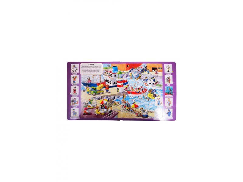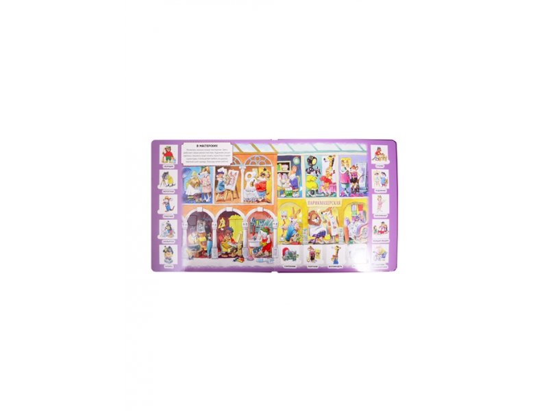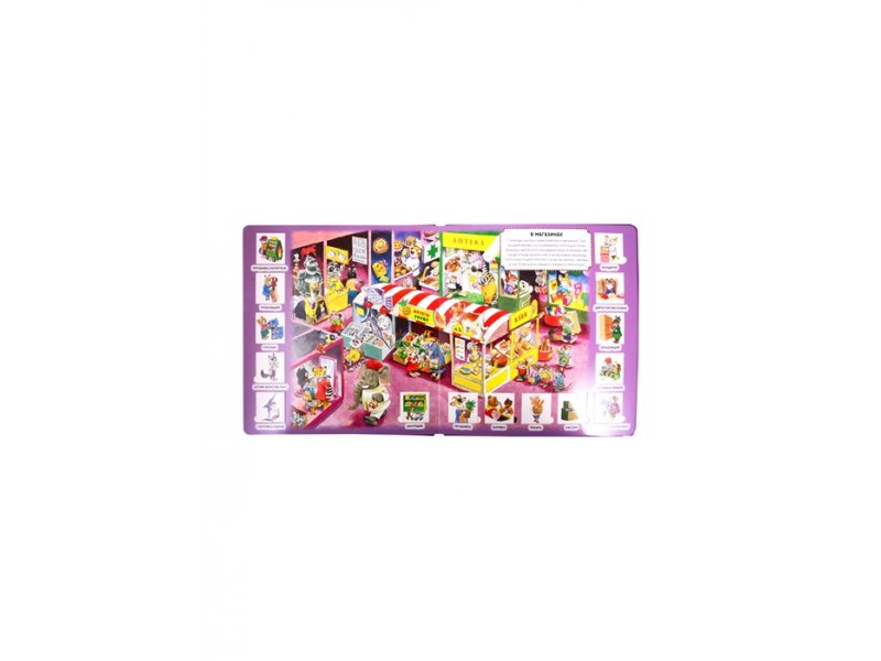 Каждый разворот книги представляет собой великолепную большую иллюстрацию с множеством весёлых персонажей, с обилием забавных мелочей и открывающихся окошек. А под каждым из 100 окошек малыша ожидает сюрприз - самая интересная информация и самая забавная иллюстрация!