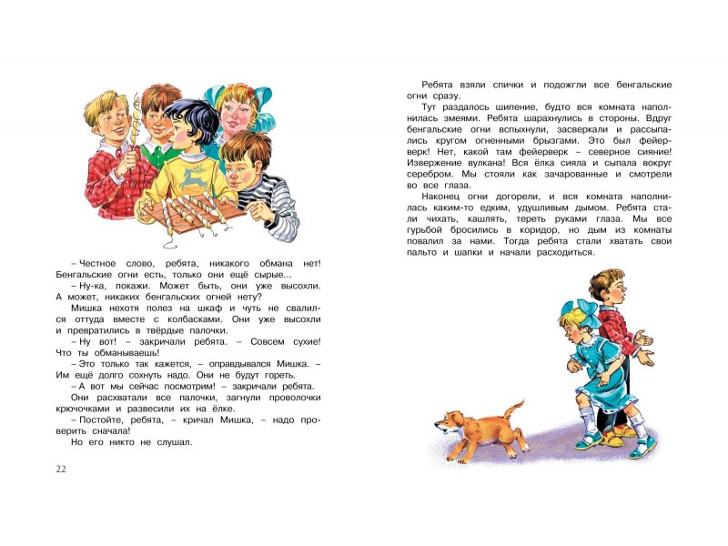 Весёлые рассказы знаменитого детского писателя Николая Носова, в книге от издательства Machaon, о том, как ребята готовились к Новому году, а также другие любимые многими читателями рассказы, адресованные младшим школьникам. Содержание: Бенгальские огни, Про Гену, Федина задача, Клякса, Телефон, Саша, Карасик.
