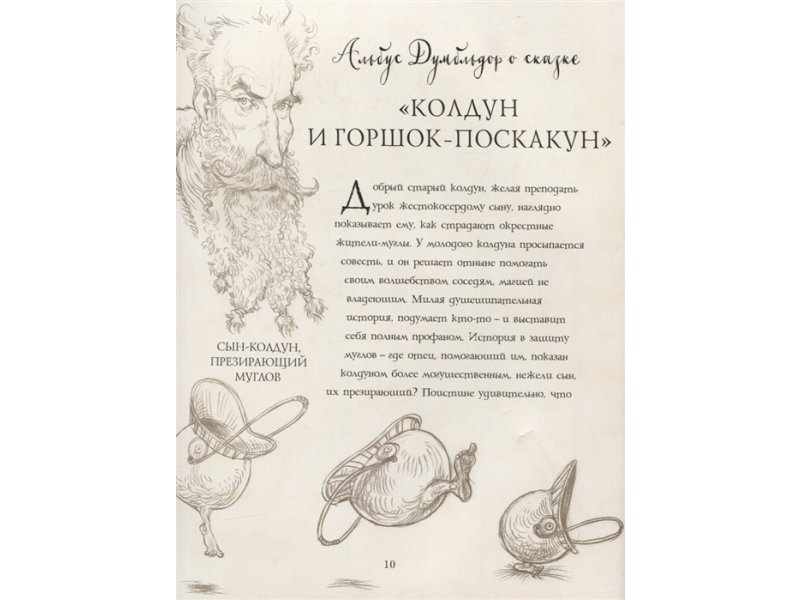 Искрящаяся смесь озорства и волшебства, изрядно приправленная юмором, – перед вами замечательная книга, одна из важнейших в библиотеке «Хогварца». Она состоит из пяти чарующих сказок, снабженных забавными и мудрыми комментариями профессора Альбуса Думбльдора и великолепно проиллюстрированных многоталантливым муглом, трижды выигрывавшим медаль Кейт Гринуэй, Крисом Ридделлом. Книга, обожаемая многими поколениями ведьм и колдунов – а Бидль начал водить пером по пергаменту еще в пятнадцатом веке – и совершенно необходимая фанатам Гарри Поттера и муглам всех возрастов.