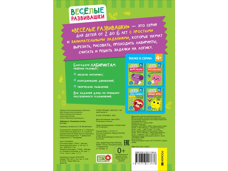«ВЕСЁЛЫЕ РАЗВИВАШКИ» — это серия для детей от 2-х до 6-ти лет с простыми и занимательными заданиями, которые помогут освоить вырезание, рисование, прохождение лабиринтов, простой счет и задачки на логику.