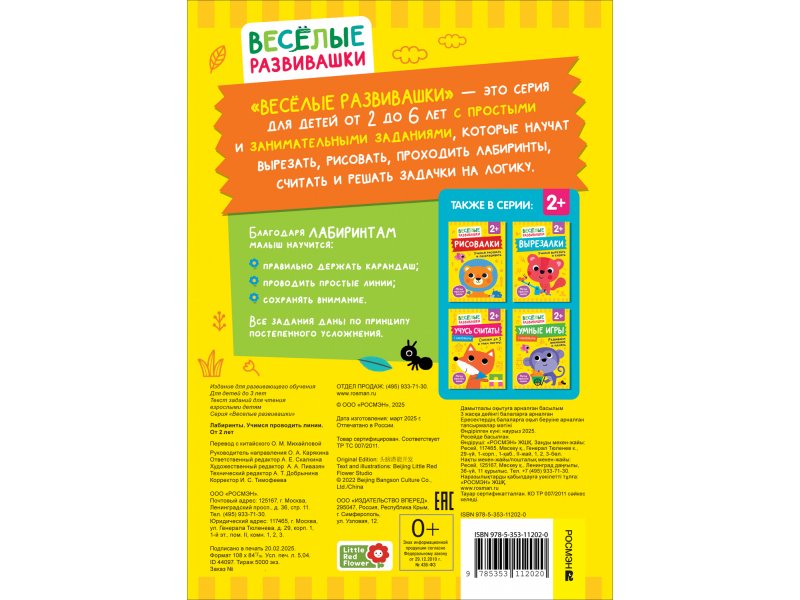 «ВЕСЁЛЫЕ РАЗВИВАШКИ» — это серия для детей от 2-х до 6-ти лет с простыми и занимательными заданиями, которые помогут освоить вырезание, рисование, прохождение лабиринтов, простой счет и задачки на логику.