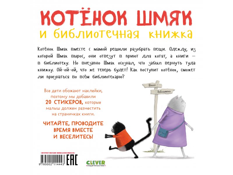 Книга с наклейками Clever Котенок Шмяк и библиотечная книжка